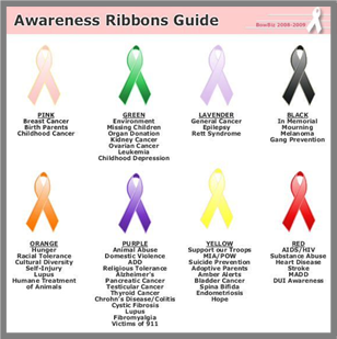 그밖에도 이렇게 다양한 컬러의 리본들이 사용되고 있으며, 우리 나라 일부 개신교계에서는 지난 크리스마스에 리본(ribbon)의 음운을 리본(reborn)으로 성탄절의 의미를 담은 빨린 리본을 상징화한 캠페인으로 주목을 끌기도 하였습니다.