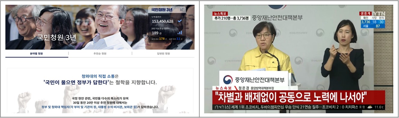 부작용도 분명 있겠지만 순기능이 더 크다는 ‘국민청원’은 여전히 인기이며 꼭 필요한 일이지만 ‘정례 브리핑’으로 매일 정해진 시간에 공중파 생방송으로 정부 관료가 등장하고 있습니다.