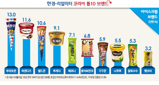 <출처 : 한국경제, 2015년 아이스크림부문 선호도 조사 결과>