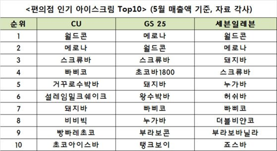<2018년 5월 편의점별 아이스크림 판매 순위>