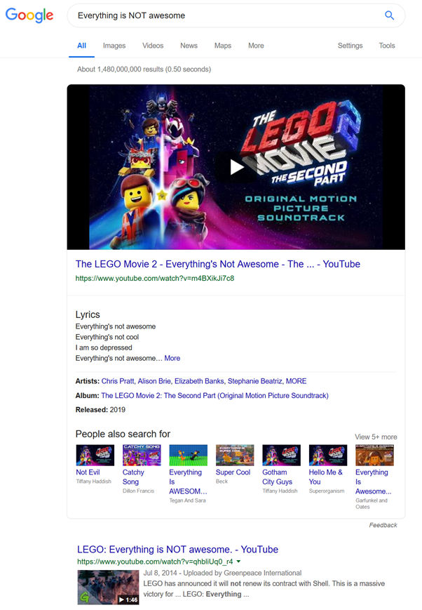 더 이상 검색 엔진에서 ‘Everything is NOT awesome’을 입력했을 때,